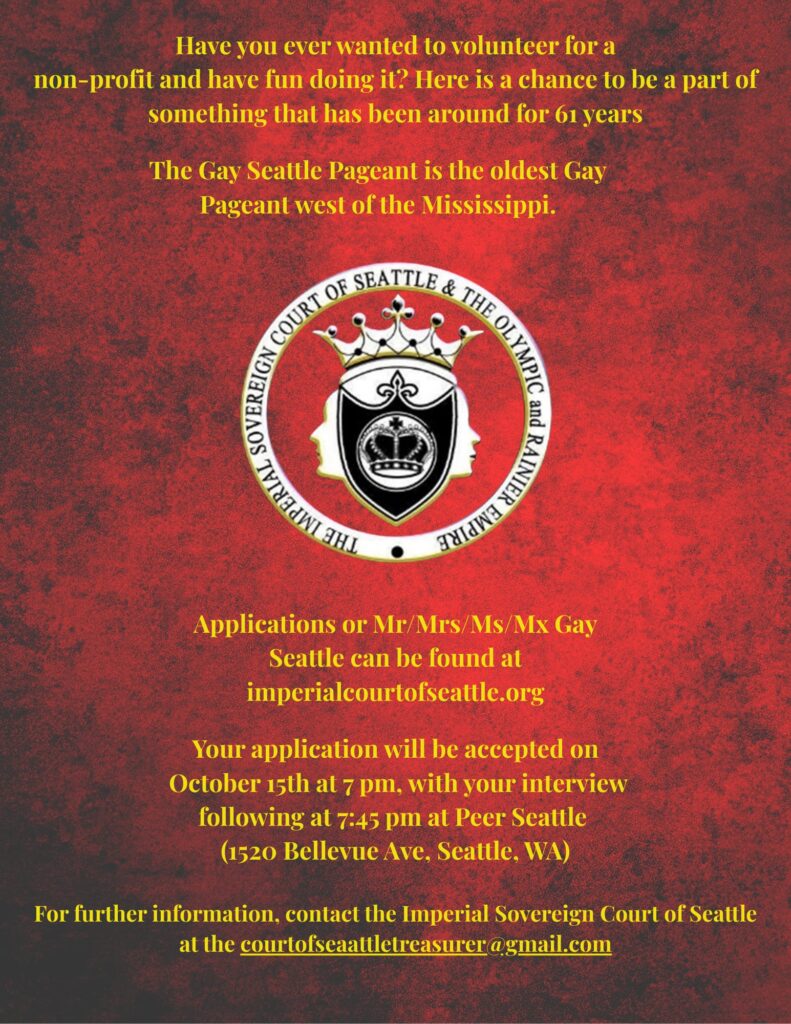 Share on Facebook Mr/Mrs/Ms/Mx Gay Applications Date: October 15, 2025 Doors: 7:00 pm Show: 7:00 pm Add to Calendar Download Application Here